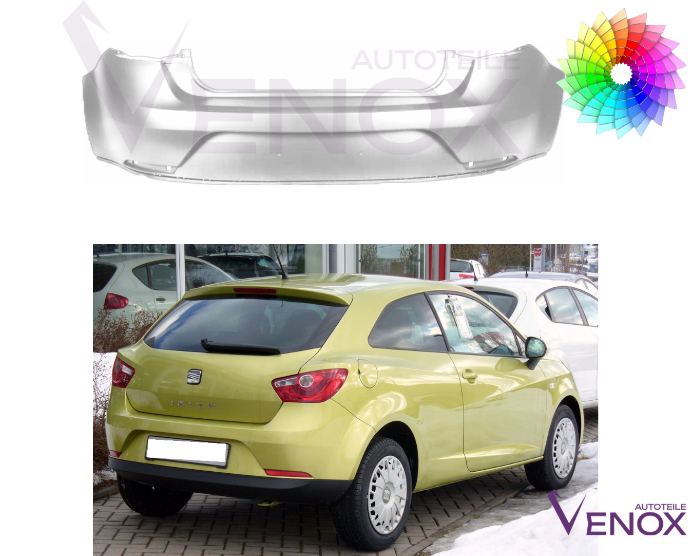 Voor Seat Ibiza 6J 2008-2012 3-deurs achterbumper gespoten in de kleur van je keuze
